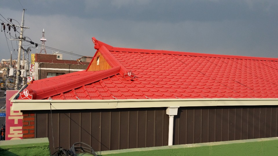 특히 칼라강판을 공사일정 전에 공장에서 미리 그집의 지붕크기를 맞춰 추녀 끝에서 용마루 끝까지 한장으로 재단하여 현장에서의 작업시간을 대폭 단축하여 대부분 공사가 하루만에 마무리까지 가능합니다. 그리고 강판의 여러색상은 도시 민관에 어울리고 미려하며, 자체에서 숙련된 고도의 기술자들이 직접 시공하여, 최대한 고객의 만족을 더 한층 높여드립니다.